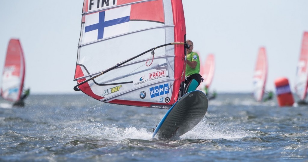 Helsingin Hernesaaressa kisattavat RS:X-luokan Euroopanmestaruuskilpailut alkoivat maanantaina 4.7.2016 kevyissä ja shiftaavissa tuulissa. Miesten kaksi fleetia saivat alleen molemmat yhden onnistuneen lähdön, mutta naisten reilu 50 osallistujan joukko ei lukuisista yrityksistä huolimatta päässyt ajamaan yhtään täyttä lähtöä. Lähtöjä piinasivat liian heikot tuulet.